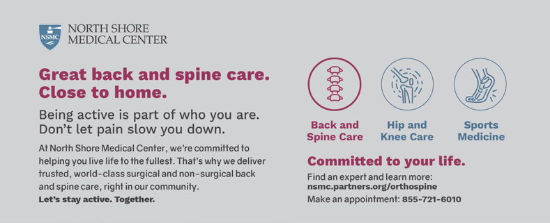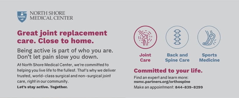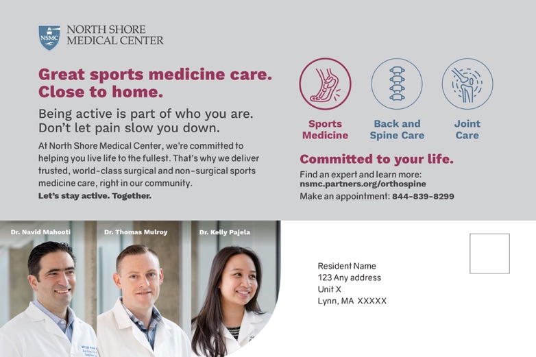 Positioning North Shore Medical Center in the marketplace as the right choice for orthopedic care, close to home – whether surgical and non-surgical. Branding NSMC as a world-class provider in their neighborhood – who thinks of their whole life – as a patient and as a member of the North Shore community.